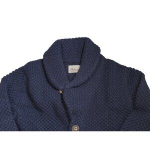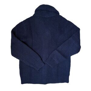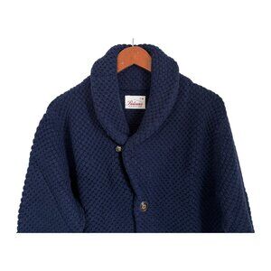 Bolivares Wool Knit Cardigan Chunky Navy Blue Made in Peru Shawl Collar Sweater