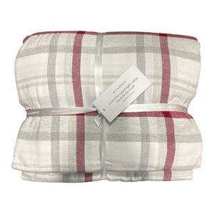 Boll and Branch Duvet Set Flannel Cotton Plaid Bedding Set in Red and Gray