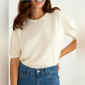 This chic cream tee features elegant lace detailing, perfect for elevating your everyday look. A versatile piece for any wardrobe.