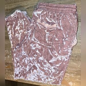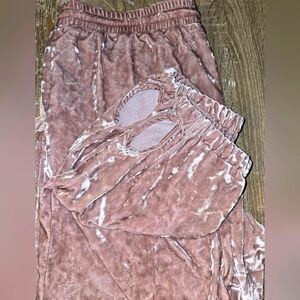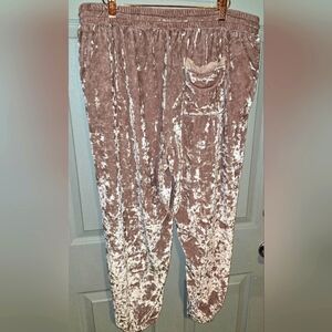 Bollie Blush Pink Crushed Velvet Cropped Jogger Pants w/ Pockets Women's XL
