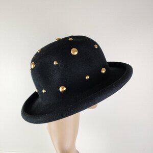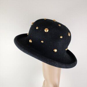 Bollman Company Studded Hat Doeskin 100% Wool Felt Gold Dome Studs