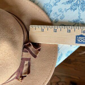 Bollman Girls VTG F1LAWS 100% Wool Felt Tan Fedora w/ Attached Ear Scarf USA S–M