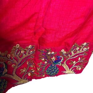 Bollywood Boho Maxi Lehenga Skirt Fuchsia Pink Gold Embroidered Peacocks