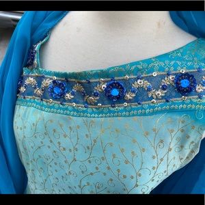 Handmade blues, turquoise, and silver. Hand sewn, bought in India