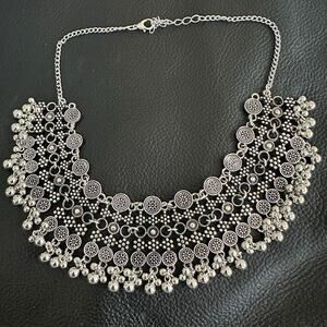 16” Bollywood Desi Boho Oxidized Filigree Silver Tone Necklace