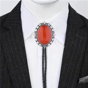 The stone bolo tie for men is made of antique silver plated alloy, natural stone, nickel free, no cadmium, lead, and the mens rhinestone bolo is made of high quality genuine leather, fit for men or women, a special apparel accessory in your shirt.