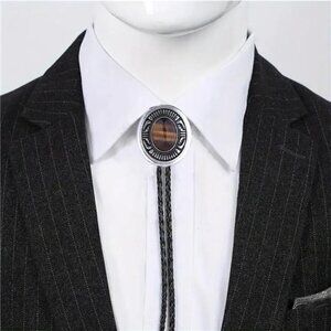 The stone bolo tie for men is made of antique silver plated alloy, natural stone, nickel free, no cadmium, lead, and the mens rhinestone bolo is made of high quality genuine leather, fit for men or women, a special apparel accessory in your shirt.