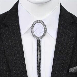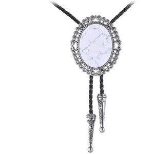 The stone bolo tie for men is made of antique silver plated alloy, natural stone, nickel free, no cadmium, lead, and the mens rhinestone bolo is made of high quality genuine leather, fit for men or women, a special apparel accessory in your shirt.