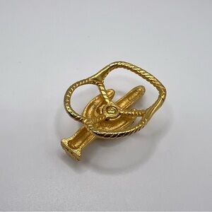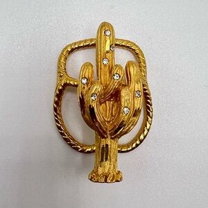 In excellent condition! Yellow Gold Plated Metal Rhinestone. 1.64” x 1.12”