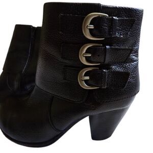 Bolo by Born Ankle Boots Leather Black Buckle Moto Goth Biker Block Heel Sz. 7.5