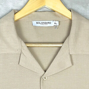 Bolongaro Trevor Floral Applique Textured Oatmeal Short Sleeved Shirt XL