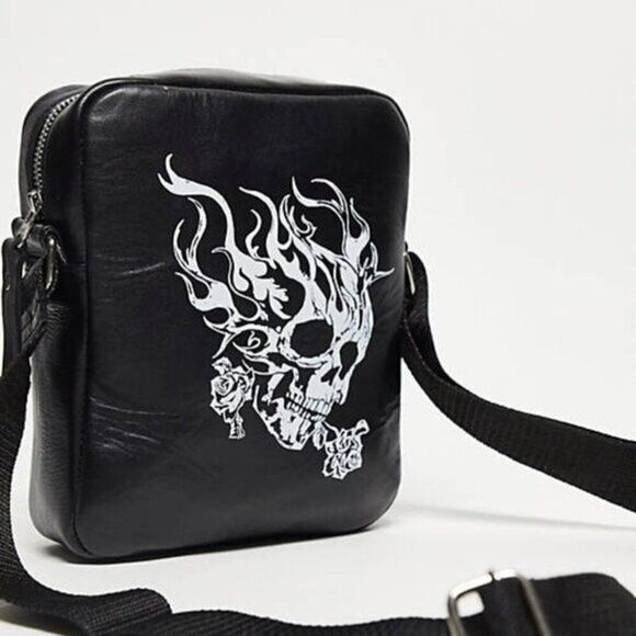 Bolongaro Trevor Men's Leather Skull Crossbody Bag Adjsutable Strap