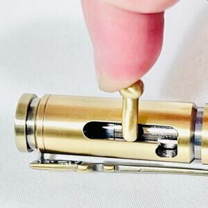 Introducing a Bolt Action Ball Point Pen with a rifle clip design, handmade with attention to detail. This pen features brass and gold metal accents paired with a polished brown swirl acrylic resin barrel. A unique piece perfect for collectors and daily writers alike. Brand New.