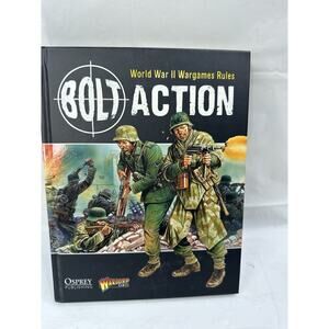 The product is a first edition core rulebook for the game "Bolt Action: World War II Wargames" by Warlord Games, Rick Priestley, and Alessio Cavatore. Published by Bloomsbury Publishing in 2012, this hardcover book features illustrations by Dennis and Peter. With a focus on military science, history, and role-playing, the book offers 216 pages of rules and gameplay options for wargamers interested in World War II scenarios. The detailed rules and strategies presented in this book make it a valuable resource for enthusiasts looking to engage in tabletop wargaming battles set during the Second World War.