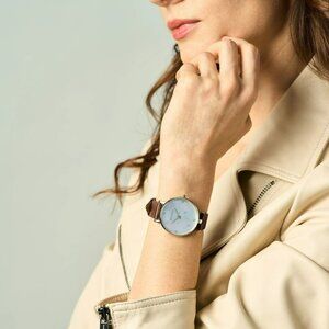 Bolvaint Paris Luxury Women's Watch Silver Face Brown Leather Strap Geometric
