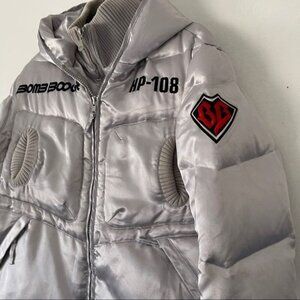 Bomb Boogie Size S Silver Down Puffer Coat Embroidered Metallic Silver