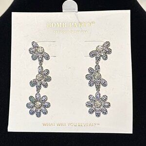 Bomb Party Dripping Daisies Black Yellow Crystal Pierced Earrings Original Card