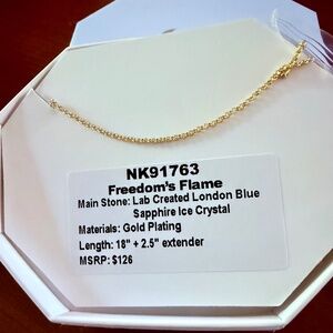 New Original Bomb Party Necklace - " Freedom's Flame" Lab created London Blue Sapphire Ice Crystal , Gold Plating