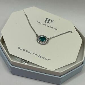 Lab Created Emerald Green Quartz fused with Genuine Quartz on Rhodium Plating