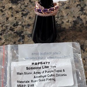 Bomb Party RBP6477 "Someone Like You" Purple Topaz & Amethyst CZ Rose Gold Sz 6