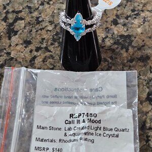 Bomb Party RBP7480 "Call It A Mood" Blue Quartz & Aquamarine Ice Crystal Sz 6