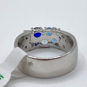 Bomb Party Ring RBP6118 Sparkled Elegance Multi Blue Cubic Zirconia Sz 8 Rhodium