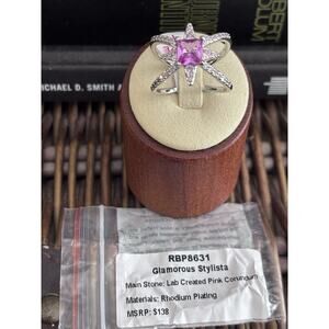 Bomb Party Ring RBP8361 “Glamorous Stylista” Size 11 Pink Corundum On Rhodium