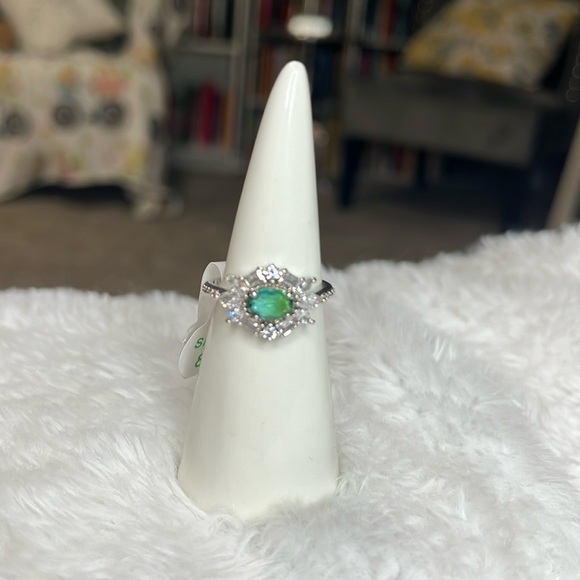 Main Stone: lab created green with cubic zirconia