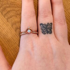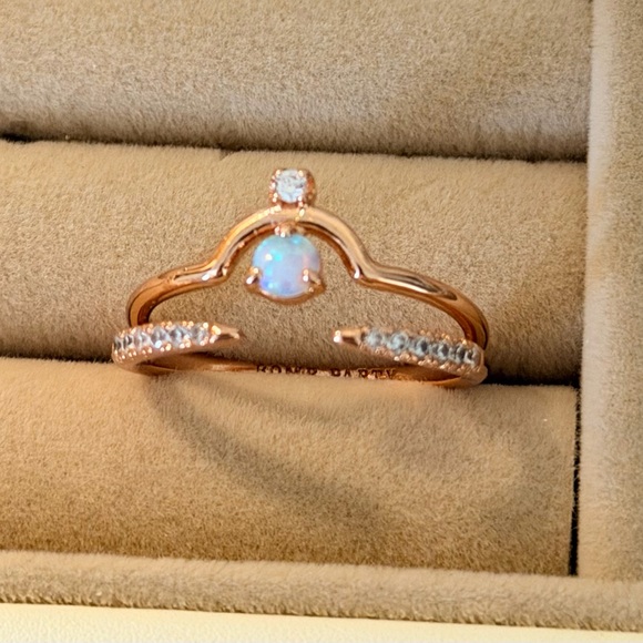 This stunning rose gold ring features a captivating opal centerpiece, accented with sparkling stones. Perfect for adding a touch of elegance to any outfit. 🌷