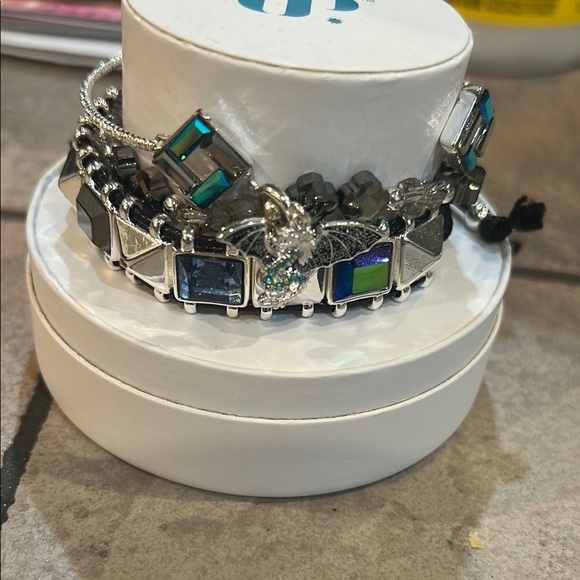 Stylish bracelet set featuring silver and blue accents. Perfect for adding a touch of elegance to any outfit.