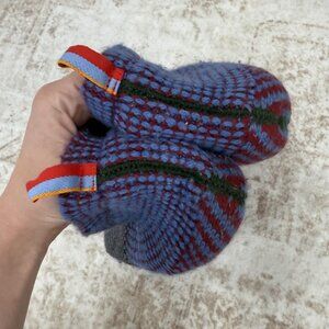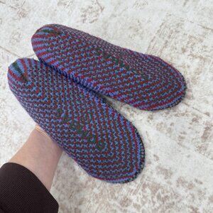 Bombas Slippers Blue Red Knit Gripper House Shoes Fleece Lined Non-Slip