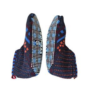 Bombas Women's S Sherpa-Lined Blue Orange Green Gripper Sock Slippers. Half sock. Half slipper. Green sherpa-lined. Festive on the outside, and cloud-like on the inside, with a fluffy sherpa lining that feels a thousand times better on feet than cold floors. They come with little grippers on the bottoms, to help prevent slips while you wear them around the house.