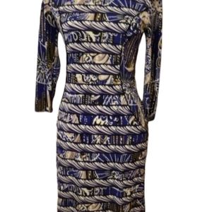 💓BCBG Maxaria dress is a great number that you'll feel sexy in, & want to strut your stuff. With geometric patterns, 3/4 length sleeves, fitting around bodus that accentuates your hourglass curves, it is oh so good. It is perfect for all times of the year. Just add layers for cooler temps.