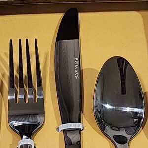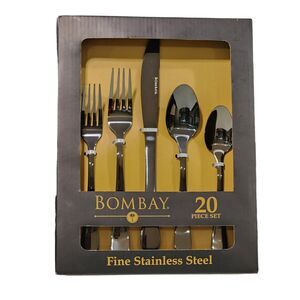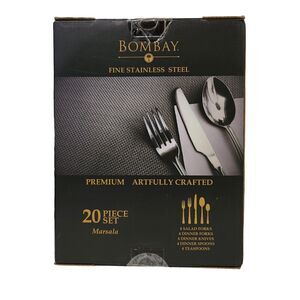 Bombay 20 Pc Set MARSALA Fine Stainless Steel Utensils Flatware Black NEW