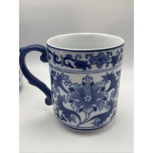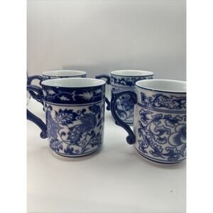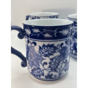 Bombay Asian Garden Mug Blue & White Floral Tea Coffee SET OF 4