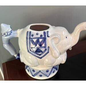 Bombay Co Circus Elephant Teapot Blue & White Clown Handle