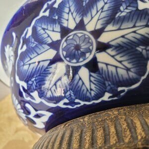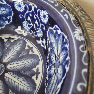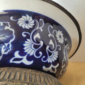 Bombay Co. Stunning Large Blue & White Chinoiseries Bowl with Brass Trim & Feet