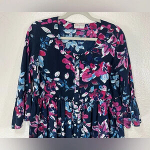 Bombay Paisley Floral Cotton Button Down Tunic Dress Women’s Size Medium. 3/4 sleeves, unlined. 100% Cotton. Has an extra spare button. Made in India. Machine washable.