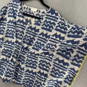 Bombay Paisley Kimono Poncho Top V Neck Womens L/XL Blue Printed Cotton