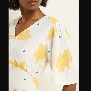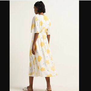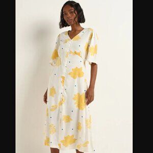 Bombay Paisley by Westside White Floral Printed Empire-Line Ruffle Sleeve Dress Size Large