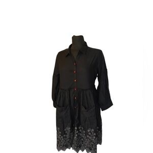 Bombay Paisley embroidered Floral Button Down Gray Dress Sz Medium