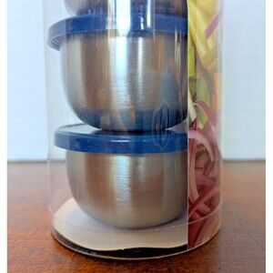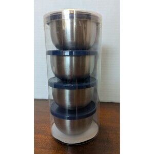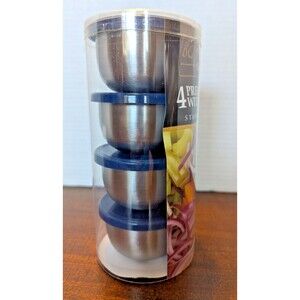 Bombay Prep Bowls and Blue Lids 4pc Stainless Steel BPA-Free Plastic 4.4 oz Each