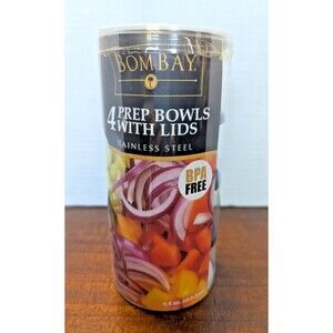 The Bombay Prep Bowls set includes 4 bowls, 3-inch diameter, made of stainless steel and BPA-free plastic lids.