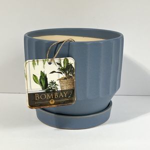Bombay Ribbed Ceramic Planter 5.5” Drainage Hole Saucer Matte Blue Flower Pot