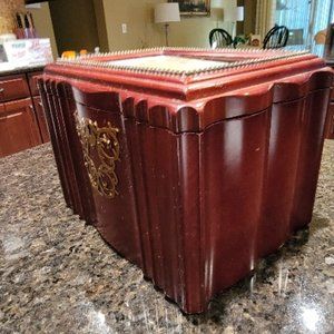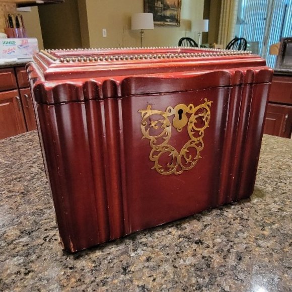 PRICE REDUCED @! Used. Nick and chipped. Metal Brass has bends. The top glass was glue, we unfastened it. Compare. Price is based on condition and Market value. No returns nor refunds so let us know what you need to make your purchase a pleasant one. Thank you. Happy Bidding. No key.