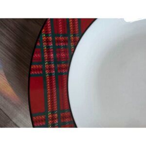 Bombay Tartan Red Plaid Soup Bowls Set Of 4 9" Diameter Dinnerware