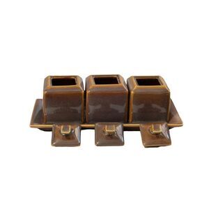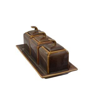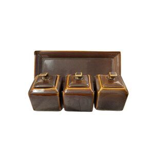 Tray measures 11 inches long by 5 inches wide each canister measures 3 inches wide by 4 1/4 inch high