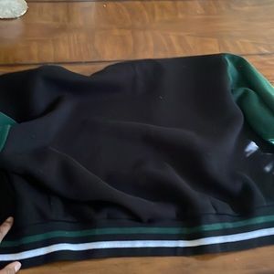 good condition and good quality, black and green varsity jacket button up with Belair embroidered across it oversize jacket