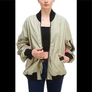 Signature 8 Detail-Sleeve Bomber Jacket. Olive green with pink.