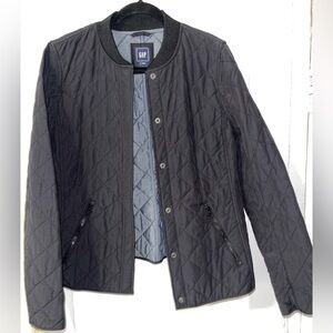 Navy Blue Quilted Bomber Jacket